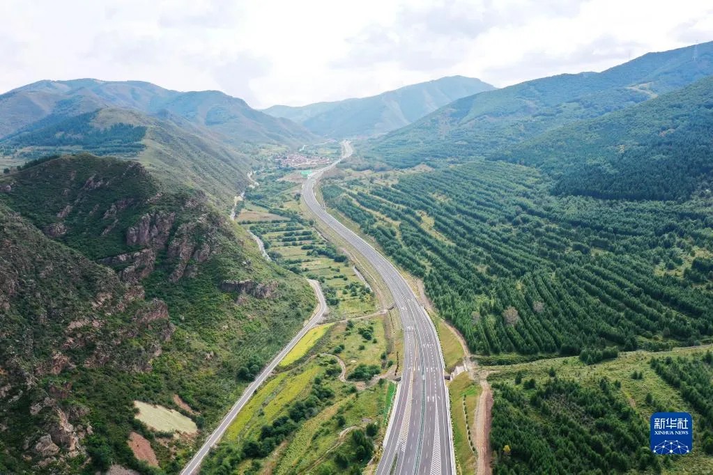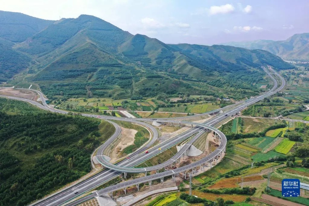 這是2021年8月31日拍攝的延崇高速河北段延伸工程張家口市崇禮白旗互通樞紐(無人機照片)。新華社發(fā)(武殿森 攝)