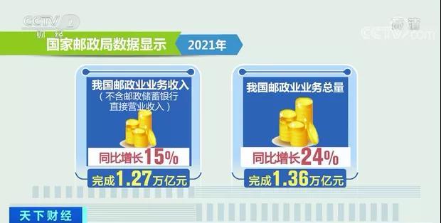 國家郵政局?jǐn)?shù)據(jù)顯示,2021年我國郵政業(yè)業(yè)務(wù)收入(不含郵政儲蓄銀行直接營業(yè)收入)和業(yè)務(wù)總量分別完成1.27萬億元和1.36萬億元,同比分別增長15%和24%;快遞業(yè)務(wù)收入和業(yè)務(wù)量分別完成1.04萬億元和1085億件,同比分別增長18%和30%。新增社會就業(yè)20萬人以上,支撐網(wǎng)絡(luò)零售額接近11萬億元。