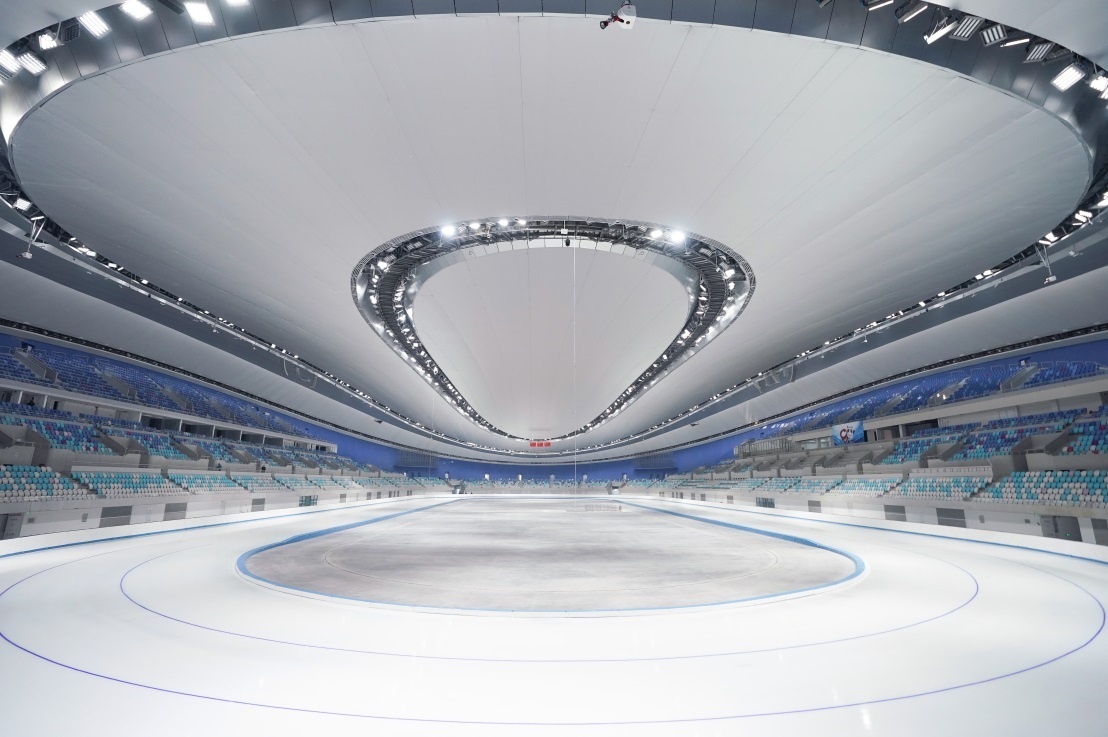 國(guó)家速滑館“冰絲帶”內(nèi)景。