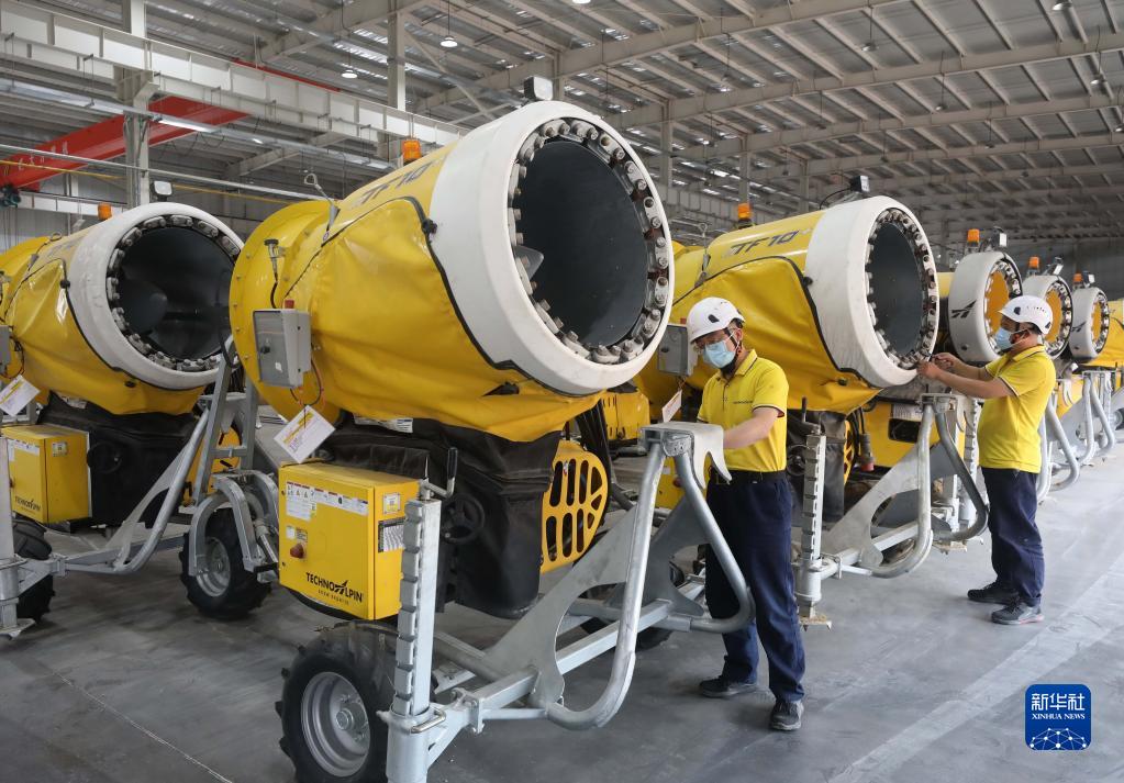 這是張家口高新區(qū)冰雪運(yùn)動(dòng)裝備產(chǎn)業(yè)園內(nèi)一家冰雪設(shè)備企業(yè)的工人在車間查驗(yàn)造雪機(jī)質(zhì)量(2021年6月23日攝)。新華社記者 楊世堯 攝