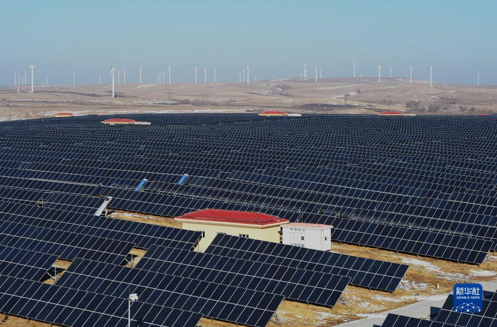 這是張家口壩上地區(qū)的國家風(fēng)光儲(chǔ)輸示范電站內(nèi)的風(fēng)光互補(bǔ)發(fā)電場(chǎng)(2017年12月27日攝)。新華社記者 楊世堯 攝