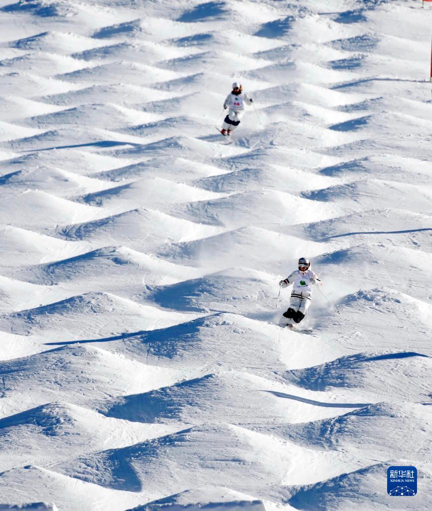 這是運(yùn)動(dòng)員在張家口市崇禮區(qū)太舞滑雪場(chǎng)參加自由式滑雪雪上技巧比賽(2018年12月14日攝)。新華社記者 楊世堯 攝