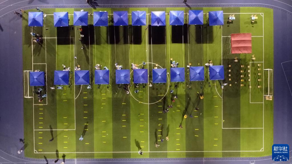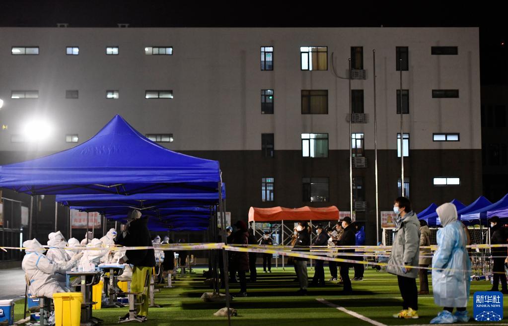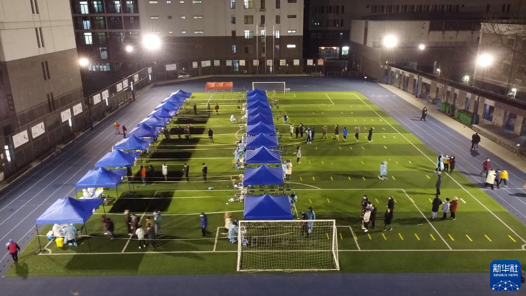 1月9日晚,天津市南開區(qū)鼓樓街道中營小學(xué)核酸檢測點(diǎn)正在檢測。新華社記者 趙子碩 攝
