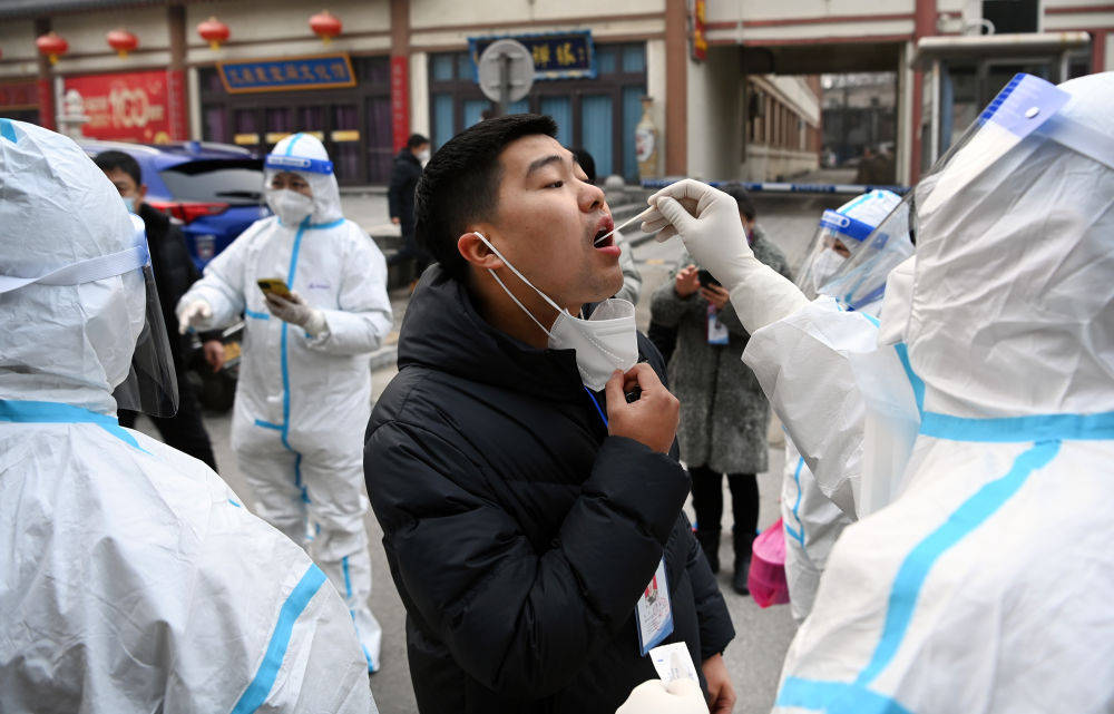 1月10日,西安市碑林區(qū)三學(xué)街社區(qū)“流動(dòng)核酸檢測(cè)組”為居民做核酸檢測(cè)。新華社記者 陶明 攝
