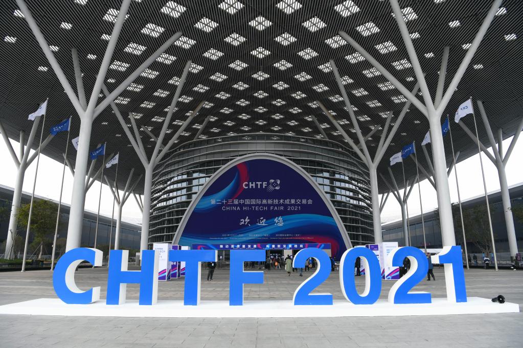 這是2021年12月28日拍攝的第二十三屆中國(guó)國(guó)際高新技術(shù)成果交易會(huì)深圳國(guó)際會(huì)展中心(寶安)展館。(新華社記者梁旭攝)