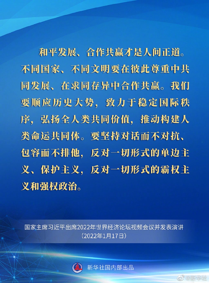 習(xí)近平在2022年世界經(jīng)濟(jì)論壇視頻會(huì)議上的演講要點(diǎn)速覽