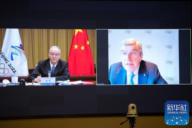 1月15日,中共中央政治局委員、北京市委書記、北京冬奧組委主席蔡奇視頻會見了國際奧委會主席托馬斯·巴赫。新華社記者陳鐘昊攝