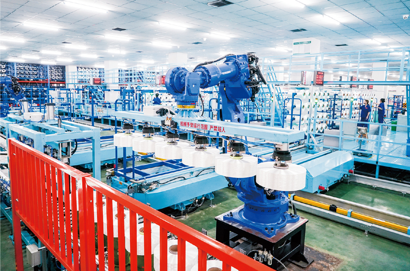近年來,江蘇省蘇州市吳江區(qū)大力推進制造業(yè)智能化改造和數(shù)字化轉(zhuǎn)型。圖為2021年5月14日,位于吳江區(qū)盛澤鎮(zhèn)的恒力化纖工業(yè)絲智能車間內(nèi),機器人在自動作業(yè)。 新華社記者 李博/攝