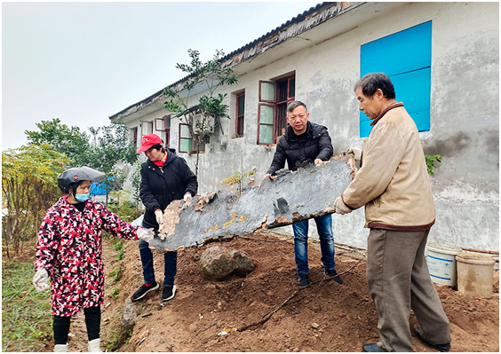 劉擁軍(右二)帶領(lǐng)群眾整治居住環(huán)境。