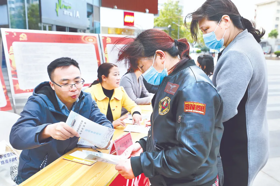 江蘇省連云港市海州區(qū)紀委監(jiān)委開展信訪宣傳專項行動,在鄉(xiāng)鎮(zhèn)集市、街道人流量大的地方現(xiàn)場接訪,傾聽群眾心聲,掌握第一手社情民情。圖為該區(qū)紀檢監(jiān)察干部向群眾講解信訪舉報受理流程。張孟瑞 攝