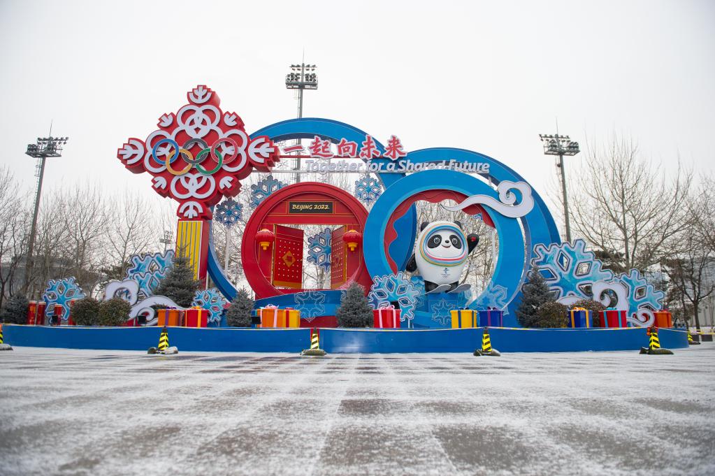 1月20日拍攝的北京奧林匹克公園內(nèi)的一處冬奧主題景觀。新華社記者 陳鐘昊 攝