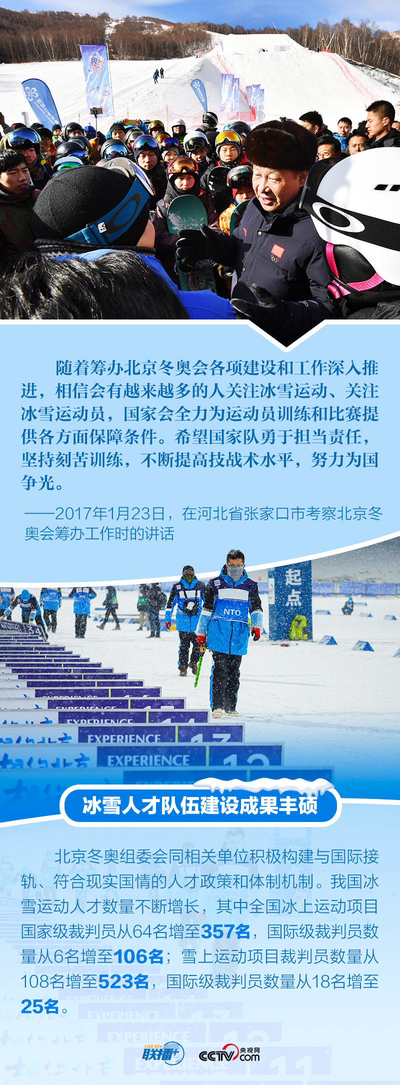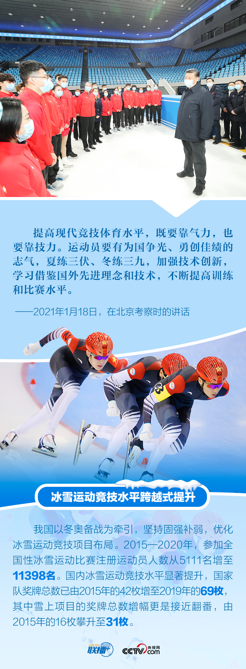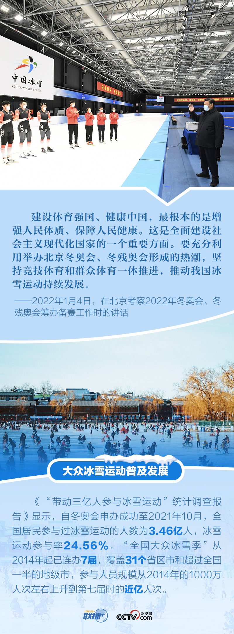 冬奧夢(mèng)交匯中國夢(mèng),體育強(qiáng)則中國強(qiáng)。多年來,體育愛好者習(xí)近平始終關(guān)注我國冰雪運(yùn)動(dòng)發(fā)展,在不同場(chǎng)合強(qiáng)調(diào)對(duì)冬季奧林匹克運(yùn)動(dòng)的支持,宣示辦好北京冬奧會(huì)、冬殘奧會(huì)的決心。距離北京冬奧會(huì)開幕僅十余天,央視網(wǎng)《聯(lián)播+》特梳理總書記關(guān)于北京冬奧會(huì)、冬殘奧會(huì)籌辦備賽工作的重要活動(dòng)及講話等,與您一起學(xué)習(xí)。