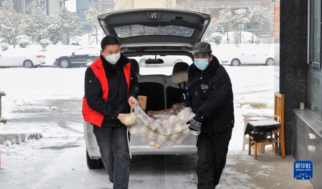 河南安陽(yáng):雪天防疫忙 配送不停歇