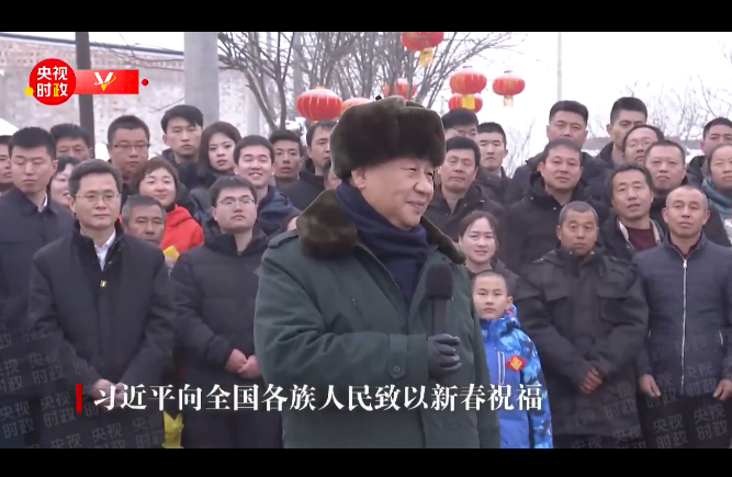 1月26日下午,習(xí)近平總書記來到山西省汾西縣僧念鎮(zhèn)段村考察調(diào)研。在村文化廣場上,村民們打起威風(fēng)鑼鼓、扭起秧歌歡慶佳節(jié)。習(xí)近平向全國各族人民、向港澳臺(tái)同胞和海外僑胞致以美好的新春祝福,祝福大家身體健康、工作順利、闔家幸福、虎年吉祥!祝愿偉大祖國山河錦繡、風(fēng)調(diào)雨順、國泰民安、繁榮富強(qiáng)!
