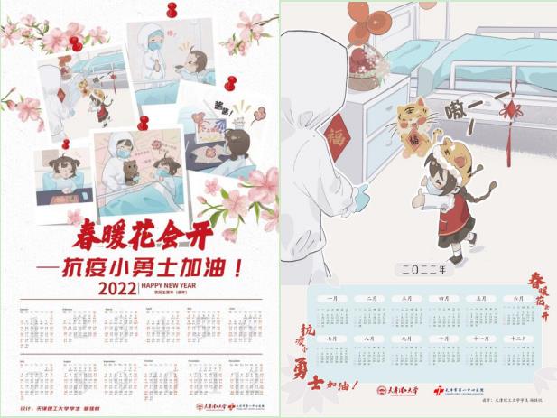 1月25日恰逢農(nóng)歷小年,天津理工大學(xué)根據(jù)學(xué)生設(shè)計的漫畫,于24日連夜趕制出百余份“春暖花會開,抗疫小勇士加油!”2022年主題年歷,作為禮物送給一中心醫(yī)院的孩子們。學(xué)校后勤管理處得知消息后,也送去了農(nóng)歷小年寓意迎祥納福糖瓜,用福袋包裝好作為禮物一并送出。1月25日下午,承載著校園愛心的“禮物”,交到了孩子們手中。