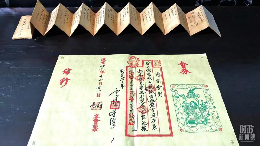 △日昇昌票號(hào)博物館中展出的匯票和賬本。(總臺(tái)央視記者許永松拍攝)