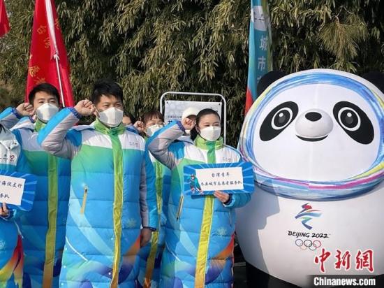 圖為臺(tái)灣青年冬奧城市志愿者宣讀志愿者誓詞。 中新社記者 朱賀 攝