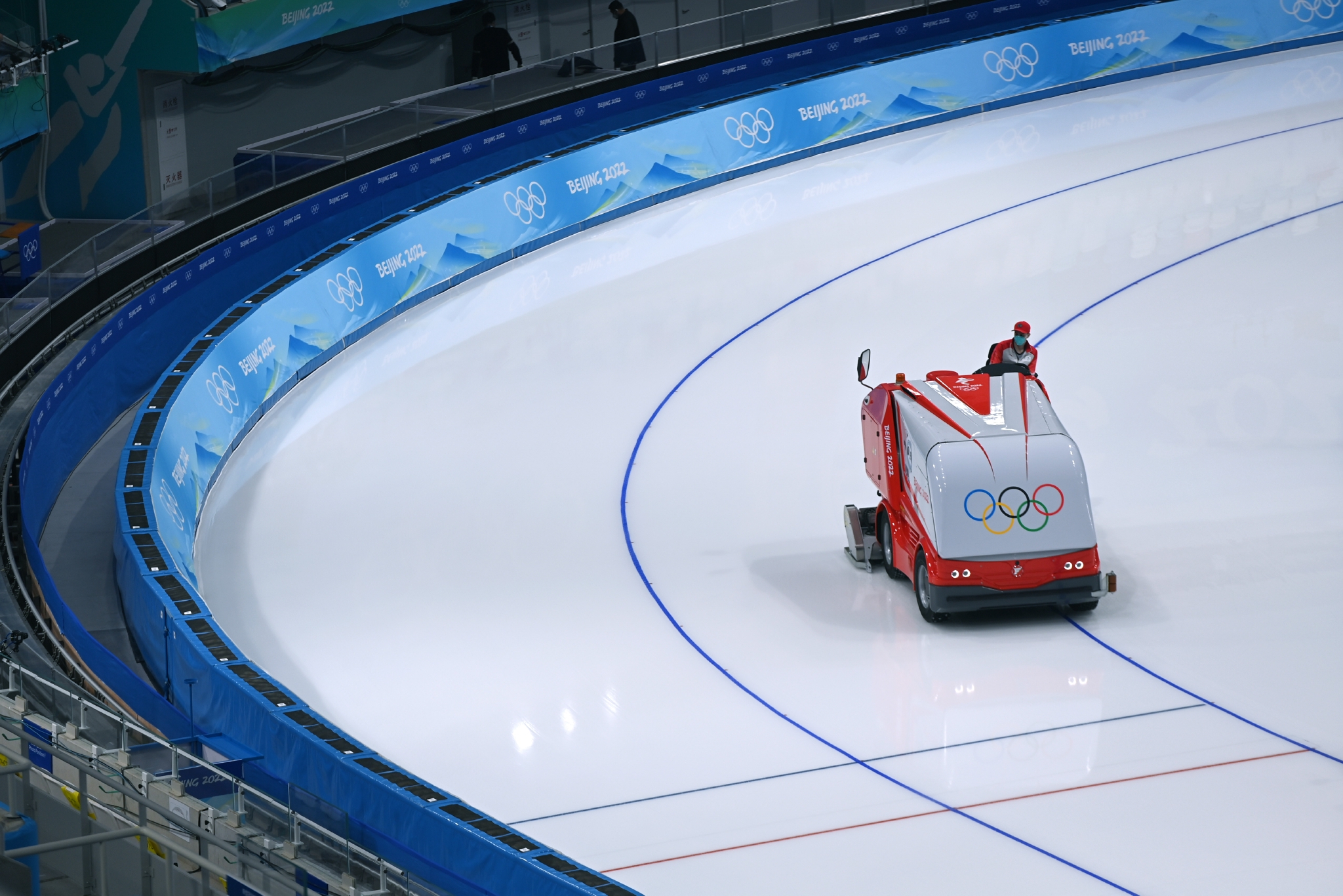 1月28日,澆冰車在國(guó)家速滑館工作。新華社記者 武巍 攝