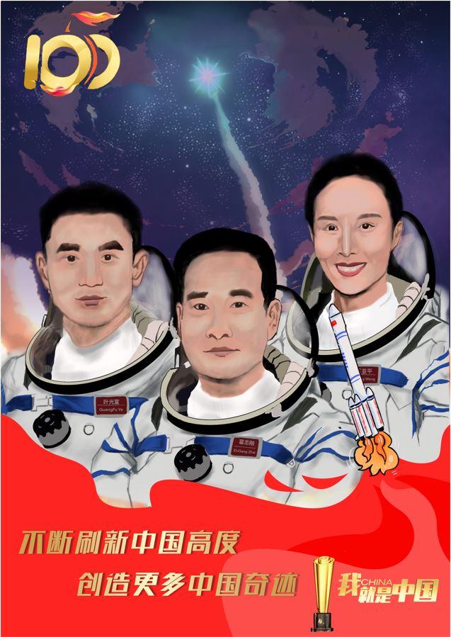 神舟十三號(hào)航天員乘組(漫畫作者:張毅)