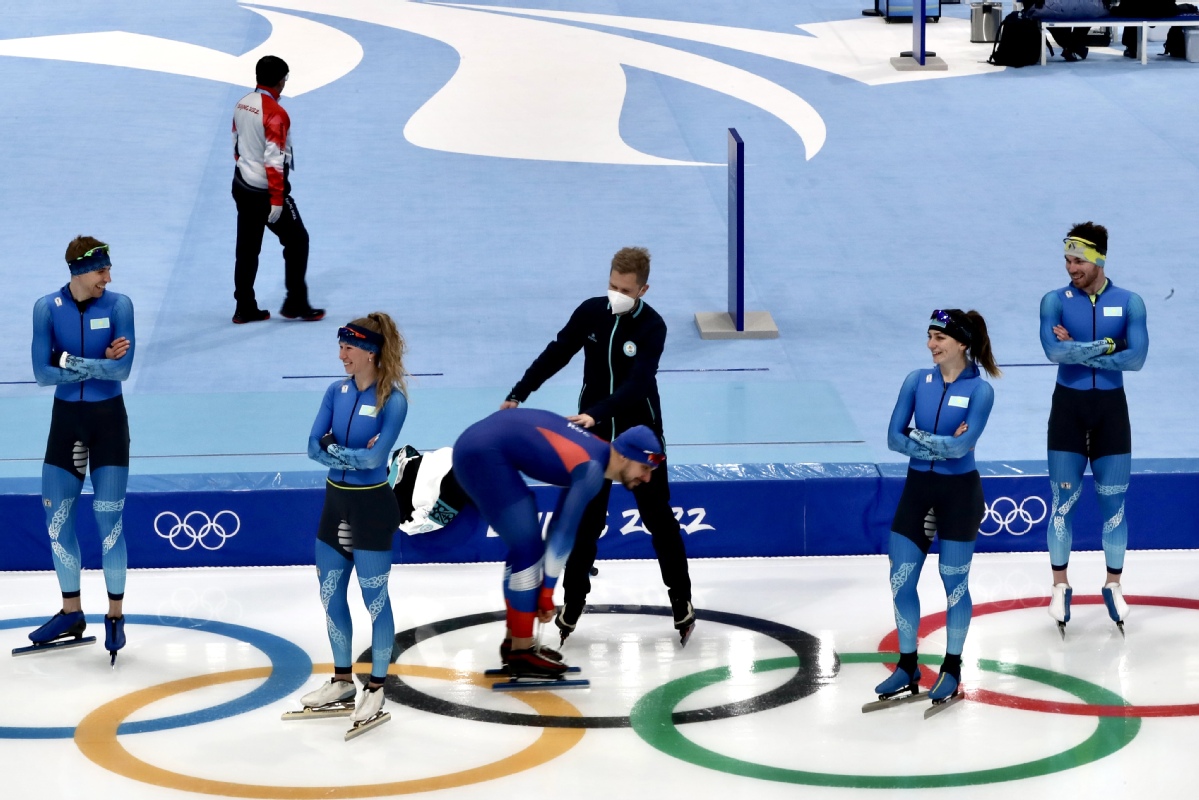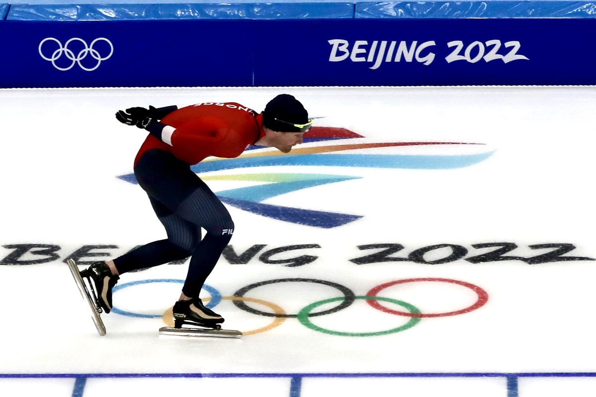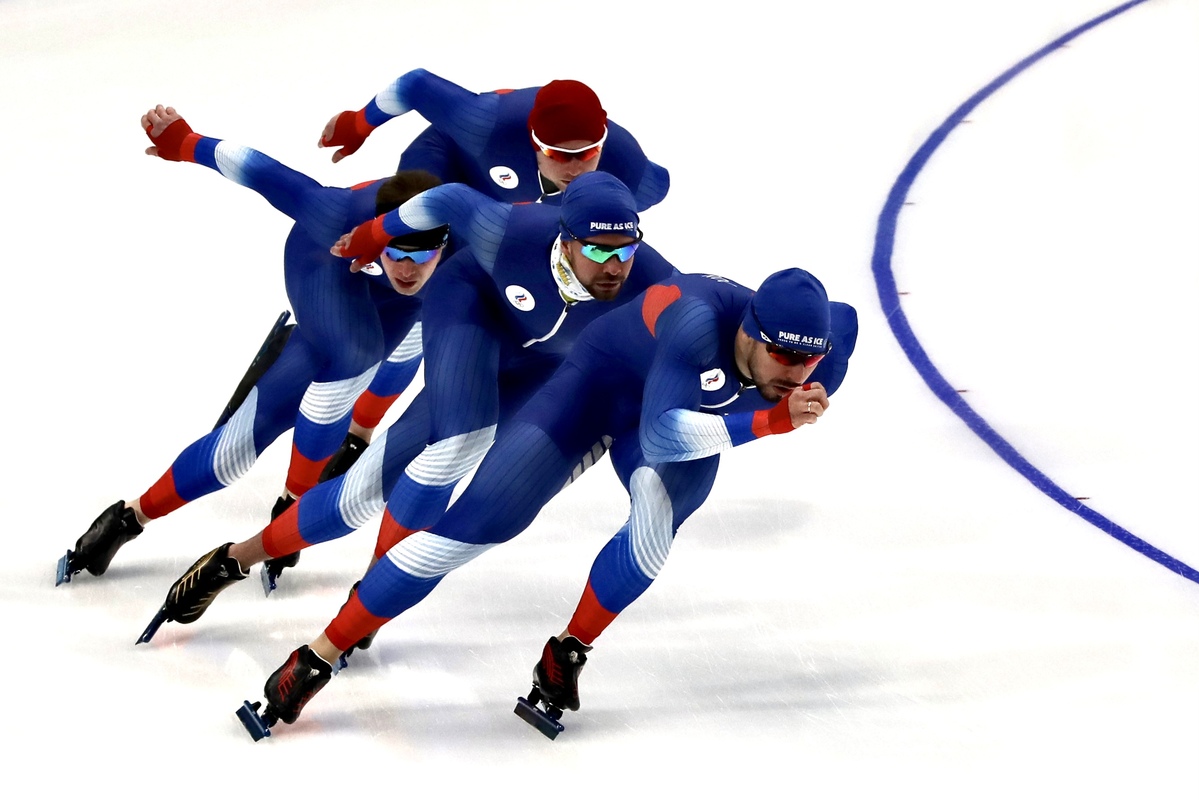1月30日,在國(guó)家速滑館“冰絲帶”,法國(guó)運(yùn)動(dòng)員在進(jìn)行賽前訓(xùn)練。 中國(guó)日?qǐng)?bào)記者 張威 攝