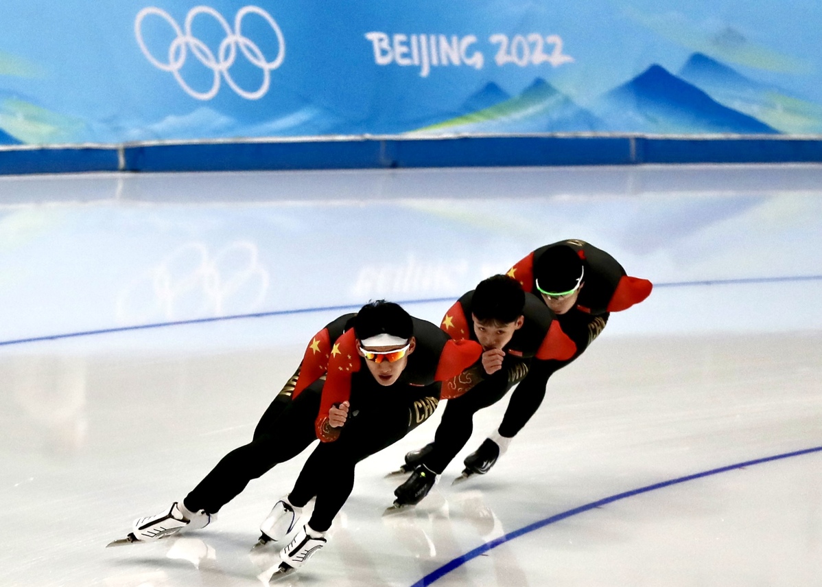 1月30日,在國(guó)家速滑館“冰絲帶”,中國(guó)運(yùn)動(dòng)員在進(jìn)行賽前訓(xùn)練。 中國(guó)日?qǐng)?bào)記者 張威 攝