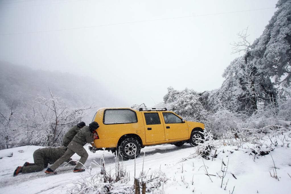300米、600米、800米……黃色皮卡車盤山而上,海拔越來越高,樹枝上冰凌越來越多,淅淅瀝瀝的雨滴也變成鵝毛般的雪花。沿著線路巡視10多個(gè)鐵塔后,道路越來越陡峭。盡管安裝了防滑鏈,車輪仍不停打滑。