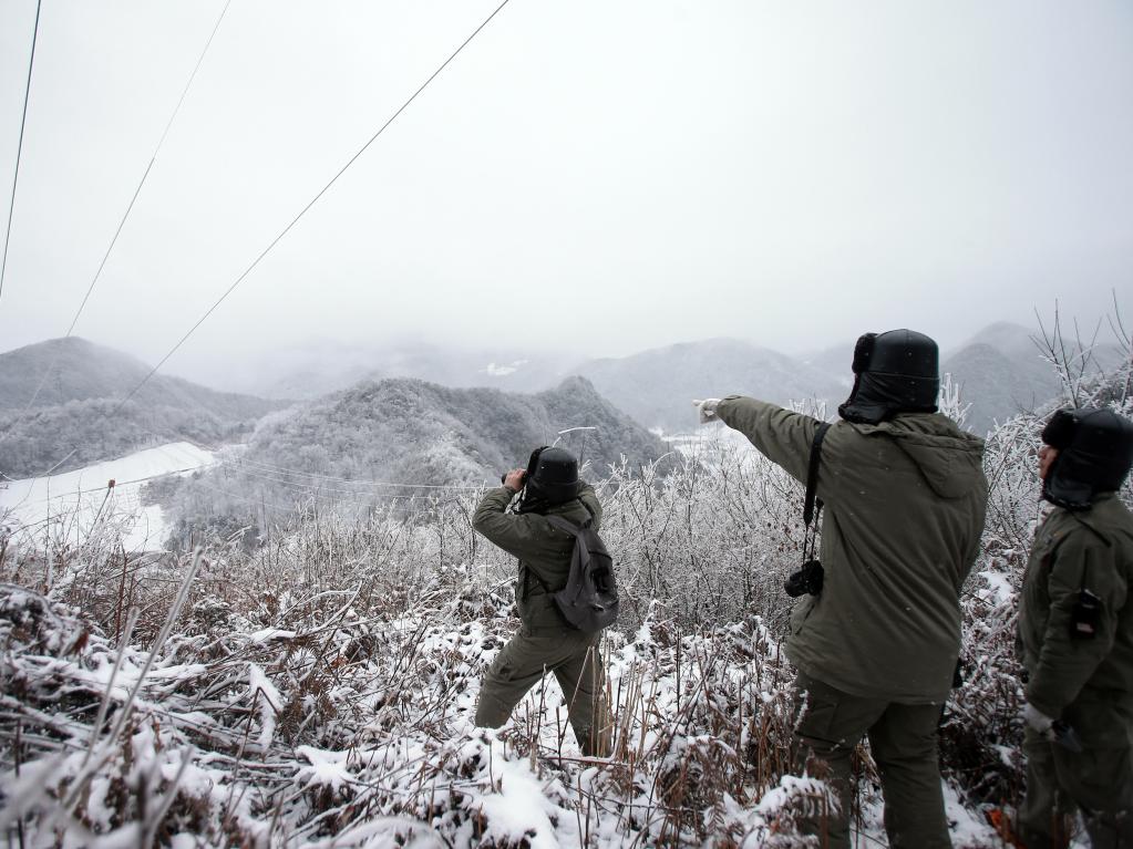“導(dǎo)線有覆冰,架空地線也有。如果地線覆冰太厚,可能會造成短路!表n永璞三人一邊拍照記錄,一邊將情況向后方匯報(bào)。