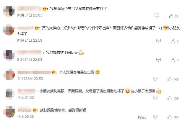 中華武學(xué)不僅是一招一式的對(duì)抗,更多的是在功夫里見(jiàn)到自己的不足,見(jiàn)到天地的廣闊。兩位小演員之間的較勁與和解,也體現(xiàn)出傳統(tǒng)武學(xué)所蘊(yùn)藏的胸懷與氣度。春晚這個(gè)舞臺(tái)給他們帶來(lái)的考驗(yàn)和成長(zhǎng),也許會(huì)讓他們更懂得面對(duì)成功與失敗,更能理解友情與榮譽(yù)。