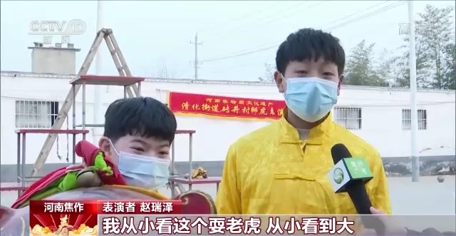 表演者 趙瑞澤:我從小看這個(gè)耍老虎,現(xiàn)在我也加入了耍老虎這個(gè)隊(duì)了,希望讓大家都知道我們村的這個(gè)耍老虎的風(fēng)俗。
