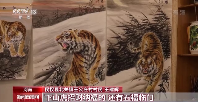 河南王公莊:“畫(huà)老虎” 農(nóng)民畫(huà)家“牽著老虎”招財(cái)納福
