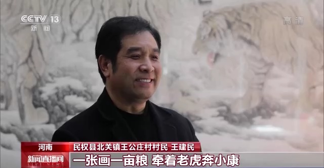 民權(quán)縣北關(guān)鎮(zhèn)王公莊村村民 王建民:原來(lái)我們村里邊兒都有 “一張畫(huà)一畝糧,牽著老虎奔小康” 這樣一個(gè)說(shuō)法。現(xiàn)在一張畫(huà)賣個(gè)幾千塊錢,家家都畫(huà)畫(huà),你畫(huà)我也畫(huà)。市場(chǎng)又很好。