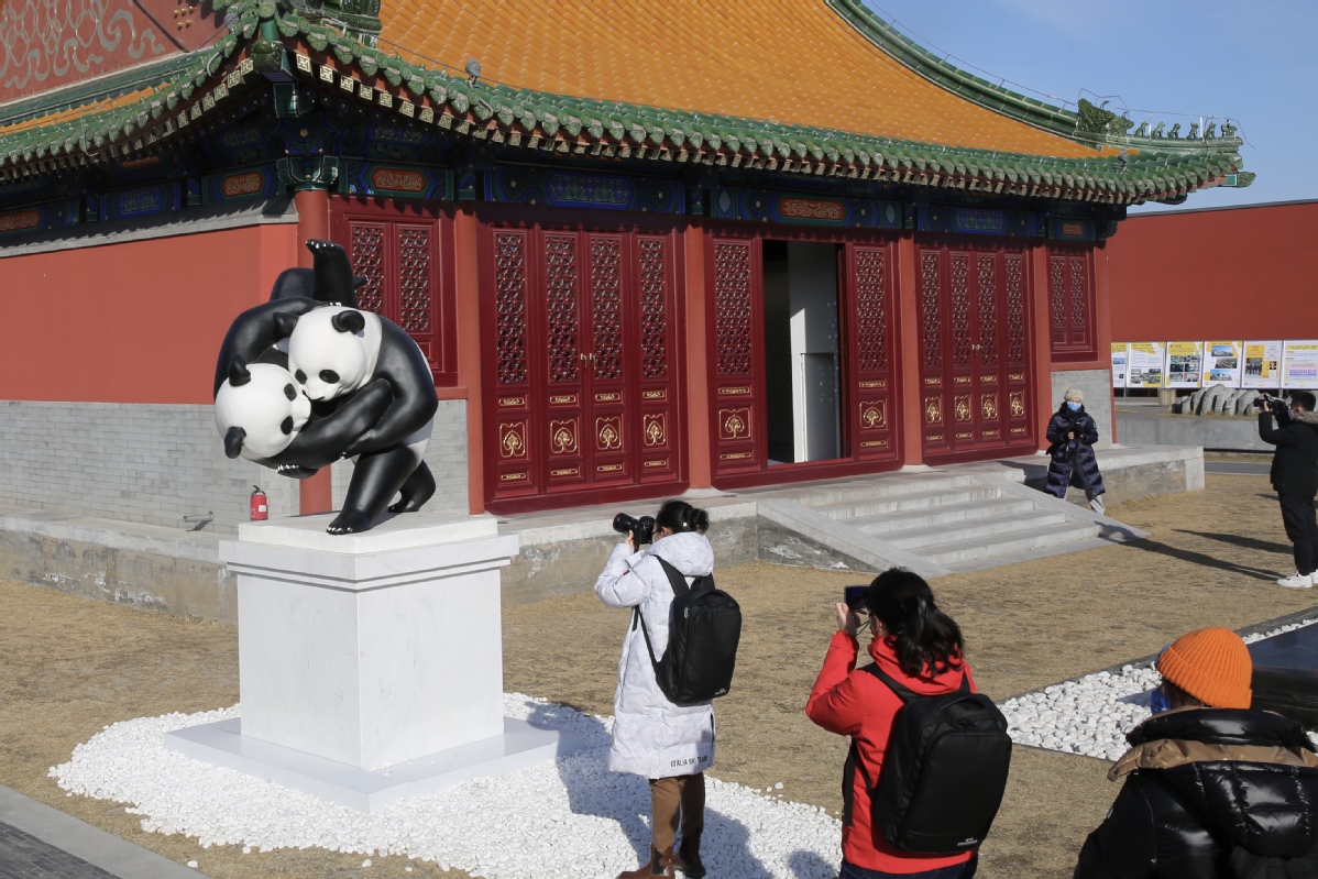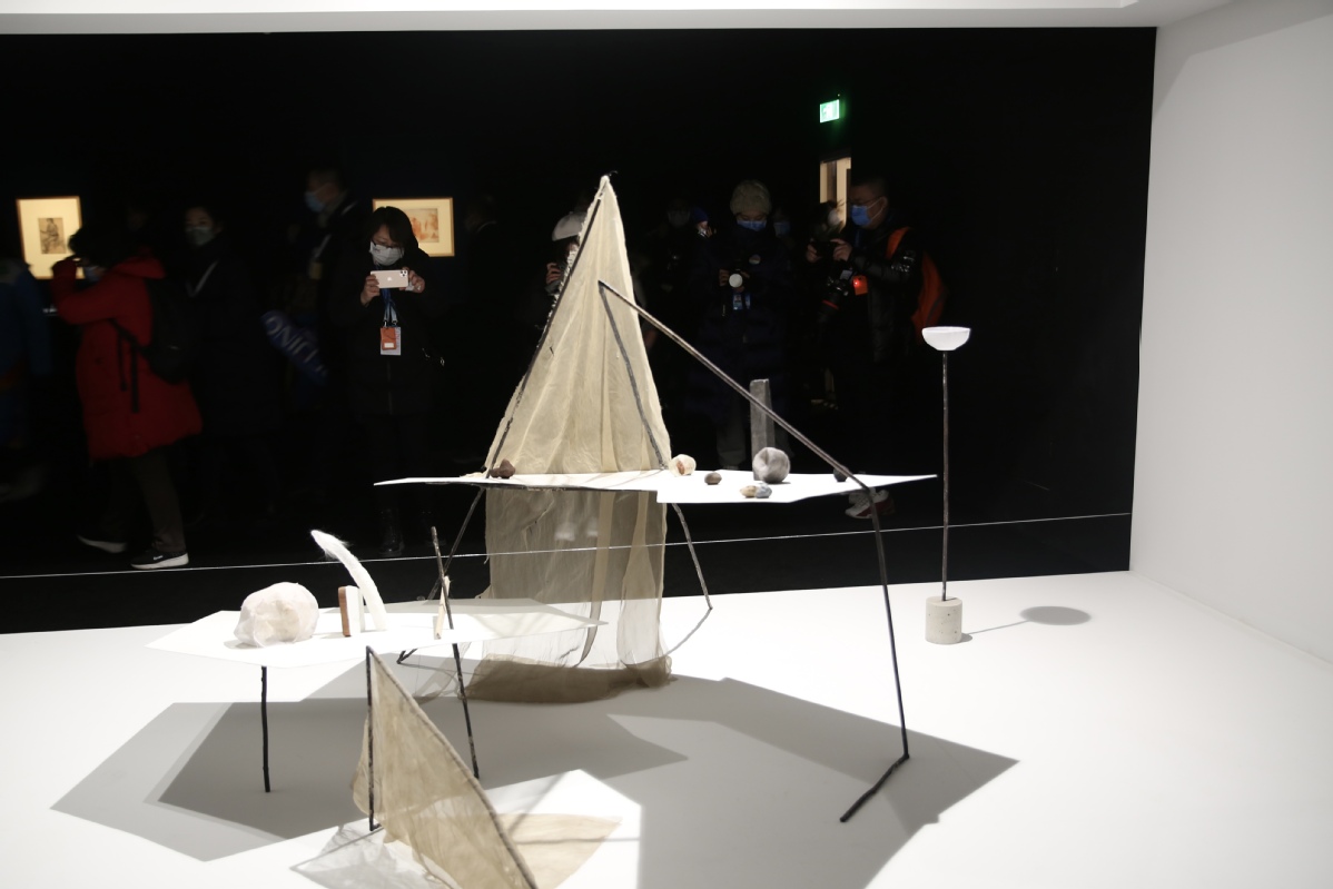 2月3日,媒體記者在木木美術(shù)館拍攝展出的藝術(shù)品。中國日報記者 匡林華 攝