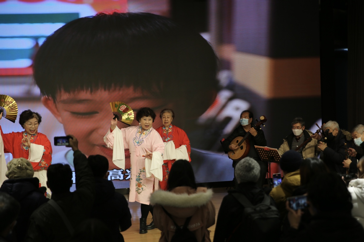 2月3日,媒體記者在“美后肆?xí)r”景山市民文化中心拍攝社區(qū)文化活動。中國日報記者 匡林華 攝