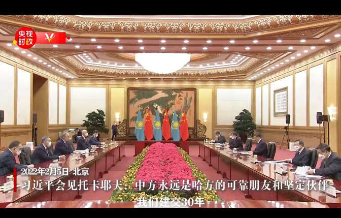 國家主席習近平2月5日上午在人民大會堂會見來華出席北京2022年冬奧會開幕式的哈薩克斯坦總統(tǒng)托卡耶夫。
