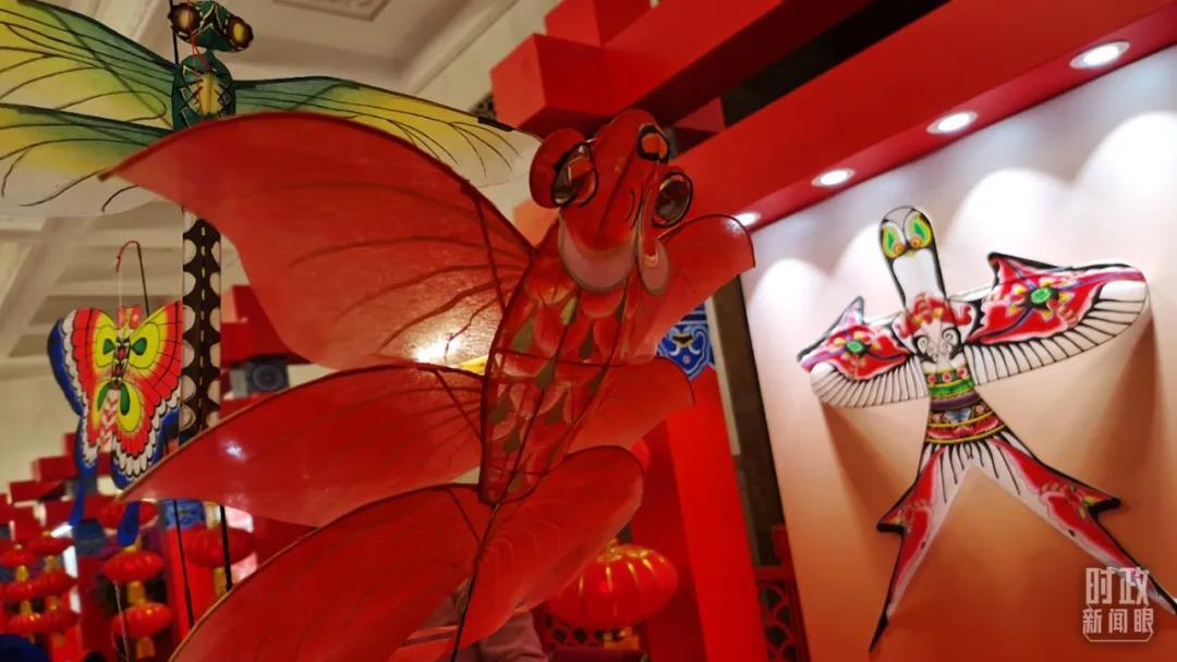 年畫、春聯(lián)、剪紙、風箏、面塑、中國結(jié)、京劇臉譜、民樂合奏……這些從中國土地上長出來的非遺作品,匠心獨運、光彩照人,讓短短數(shù)十米的廊道化身為精華版的中國“廟會”。