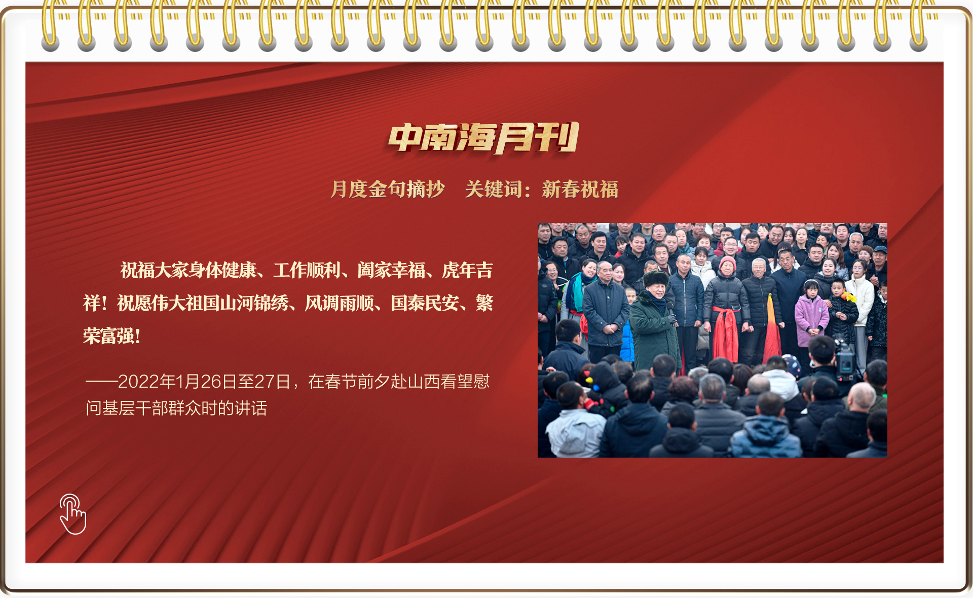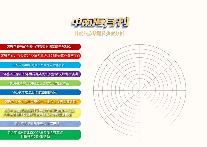 央視網(wǎng)《中南海月刊》運(yùn)用智能大數(shù)據(jù),梳理總書記2022年1月的重要活動(dòng)和講話,一起感悟總書記赤誠(chéng)的為民情懷。