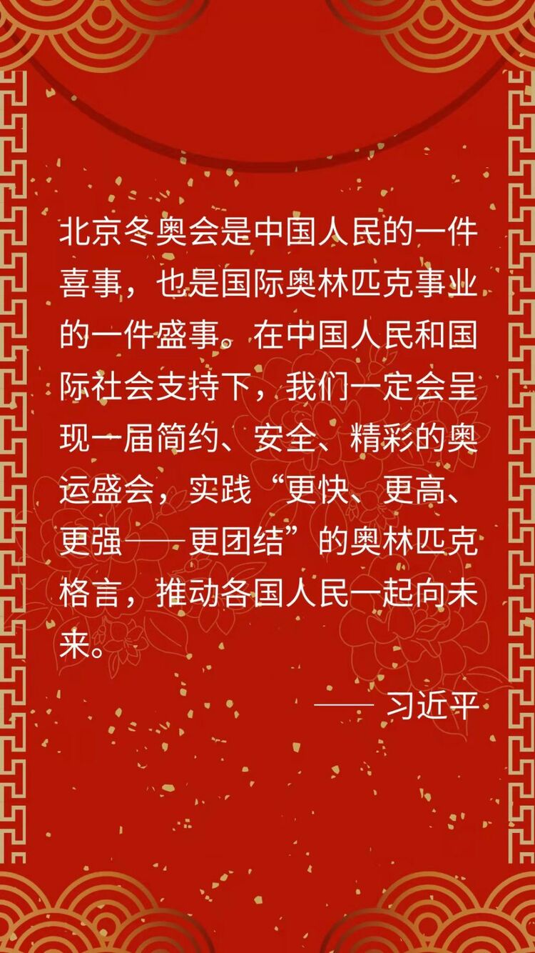 習(xí)近平指出,北京冬奧會是中國人民的一件喜事,也是國際奧林匹克事業(yè)的一件盛事。在中國人民和國際社會支持下,我們一定會呈現(xiàn)一屆簡約、安全、精彩的奧運盛會,實踐“更快、更高、更強——更團(tuán)結(jié)”的奧林匹克格言,推動各國人民一起向未來。習(xí)近平并向兩市全體市民致以節(jié)日的問候。