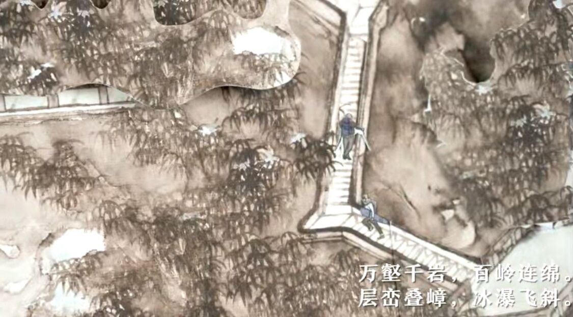 層巒疊嶂,冰瀑飛斜。