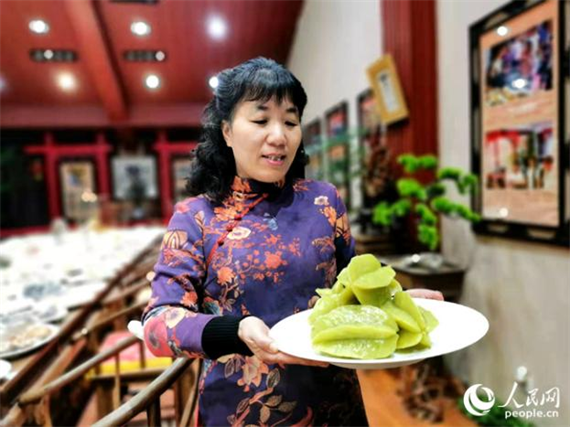 壽山石雕刻家葉秦展示自己創(chuàng)作的“滿漢全席”。人民網(wǎng) 林曉麗攝