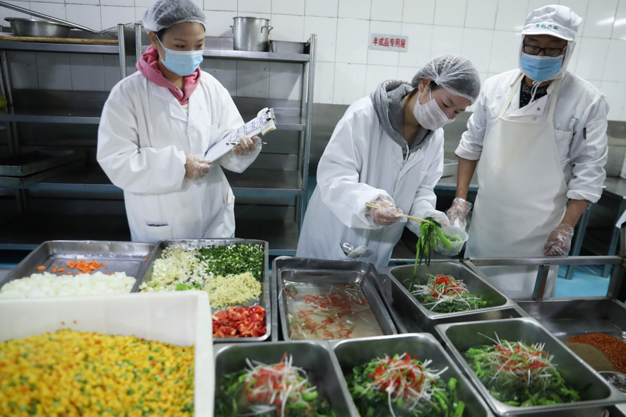工作人員在進(jìn)行菜品留樣工作(資料圖)