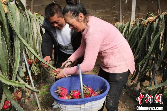 靳紅軍介紹,從7月開始,大棚里的火龍果便陸續(xù)成熟,到來年5月,能結(jié)7茬果。