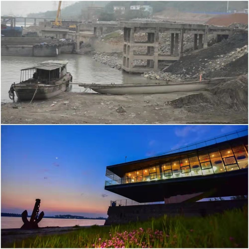 ▲上圖:2013年11月14日拍攝的安徽銅陵濱江碼頭(詹俊/攝);下圖:2019年5月5日拍攝的安徽銅陵濱江生態(tài)公園一隅(郜小兵/攝)