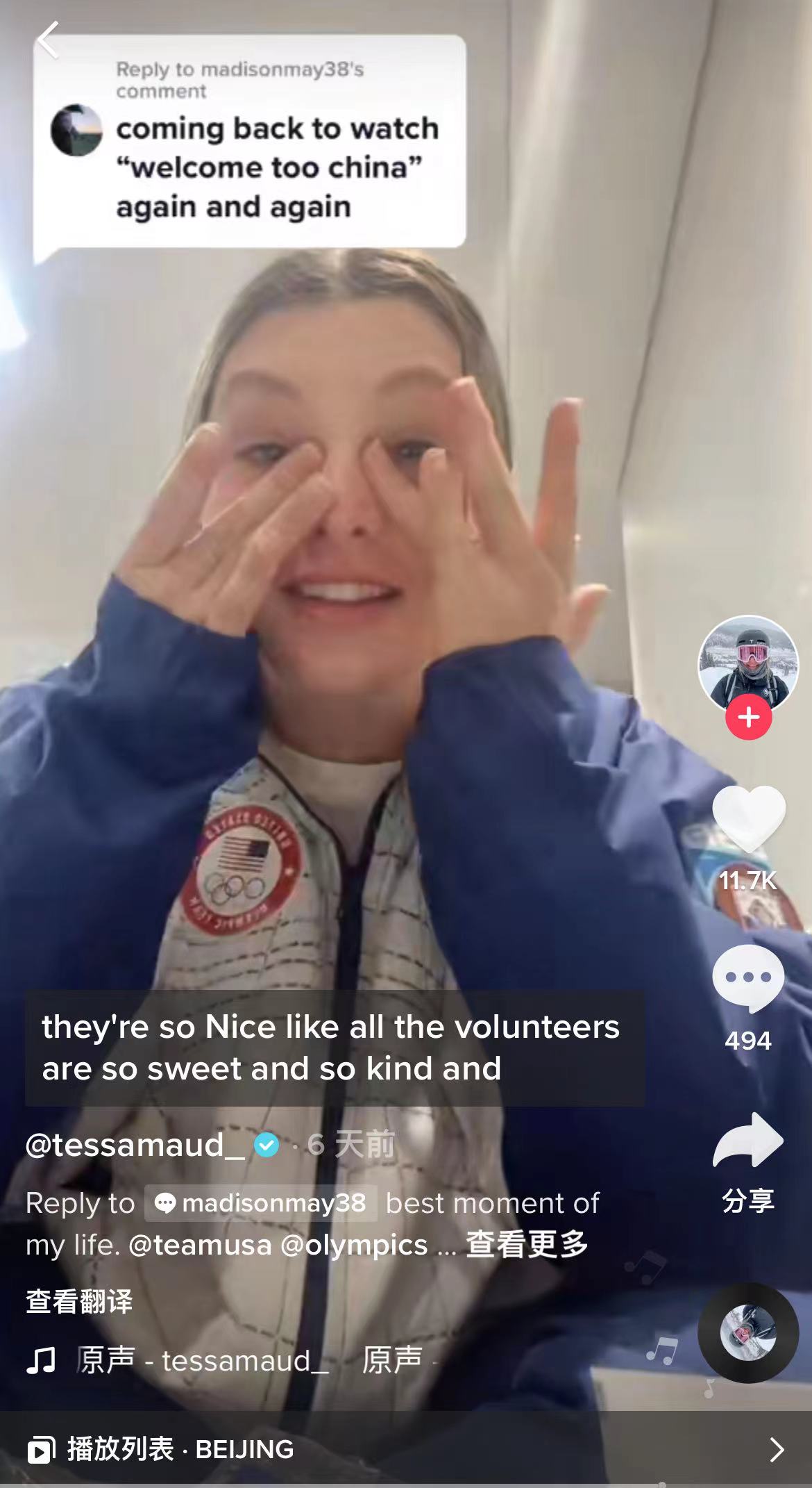 美國(guó)運(yùn)動(dòng)員特莎分享在中國(guó)的最后一天 說(shuō)著說(shuō)著又哭了
