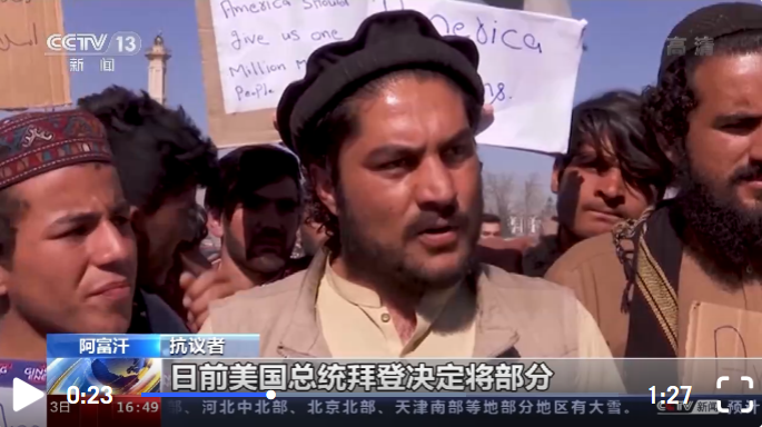 阿富汗抗議者:日前,美國(guó)總統(tǒng)拜登決定將部分被凍結(jié)的阿富汗資產(chǎn)分配給“9·11”事件受害者,因此我們?cè)谶@里抗議。我們要問(wèn)國(guó)際社會(huì),美國(guó)怎么能決定將阿富汗人民的資產(chǎn)用于(賠償)“9·11”事件受害者?抗議將出現(xiàn)在阿富汗每個(gè)省份,作為一名阿富汗青年,我呼吁阿富汗人民站出來(lái)抗議,捍衛(wèi)自己的權(quán)利。