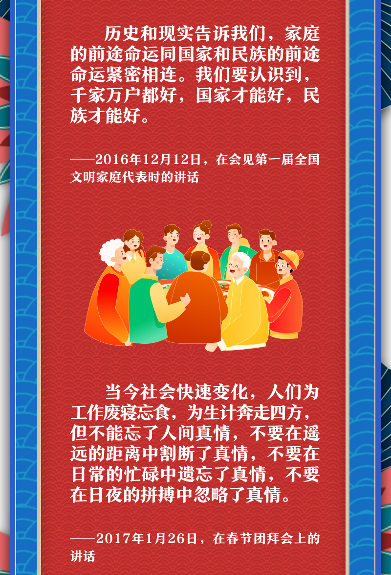 他提醒大家,把實現(xiàn)家庭夢融入民族夢之中,心往一處想,勁往一處使。