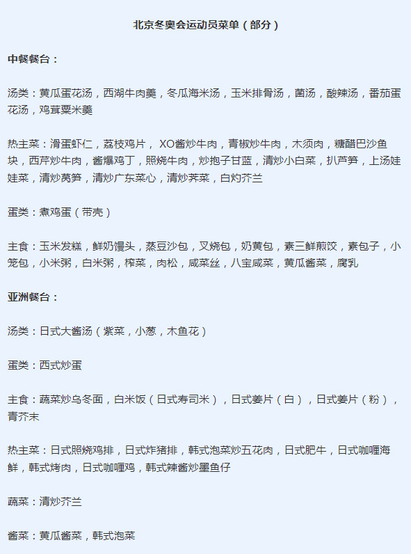 延慶冬奧村運行主任宋雪瑩表示,這份菜單經(jīng)過近四年的開發(fā),旨在滿足運動員不同的飲食需求,同時考慮到宗教多樣性。