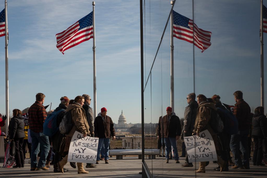 1月23日,人們?cè)诿绹?guó)首都華盛頓參加游行活動(dòng),反對(duì)新冠疫苗強(qiáng)制令等多種防疫措施。新華社發(fā)(阿倫 攝)
