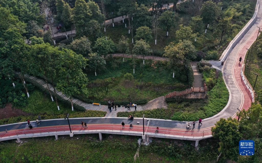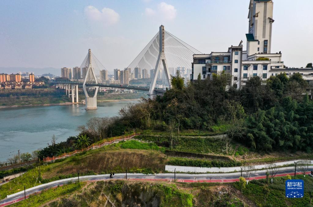 這是2月15日拍攝的位于重慶市大渡口區(qū)的重鋼崖線山城步道附近景色(無人機(jī)照片)。新華社記者 王全超 攝