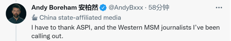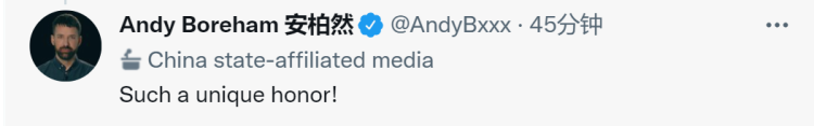 安柏然回復稱,“我覺得這是因為我最近與一些外國記者和澳大利亞戰(zhàn)略政策研究所有過爭執(zhí),他們可能多次報道過我的賬號,試圖讓我被貼上標簽。說實話,如果這不限制我使用,我很榮幸能獲得這一頭銜。”↓