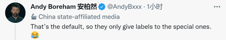 然而,安柏然今日(19日)驚訝發(fā)現(xiàn),自己被推特貼了個標簽:“wow,推特官方給我貼上了‘中國官方媒體’的標簽。據(jù)我所知,我是第一個獲得這一令人垂涎頭銜的外國人。讓我們繼續(xù)與機器戰(zhàn)斗吧,伙計們!”↓推文后還附上代表愉快、慶祝以及中國國旗的表情符號。